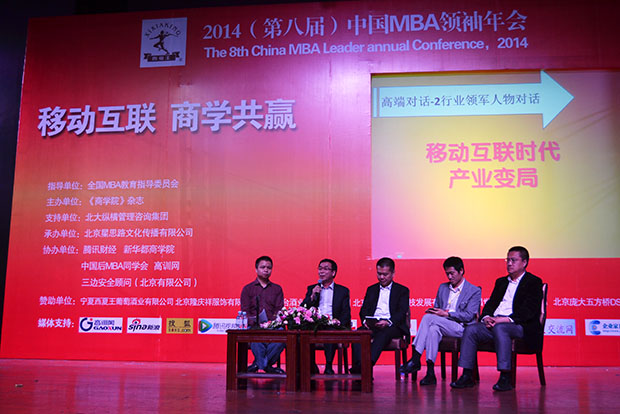 2014年5月2日至4日,我公司董事長李銀祥應(yīng)邀出席了在北京召開的第八屆中國MBA領(lǐng)袖年會(huì)。會(huì)上,李銀祥作為特邀嘉賓,參與行業(yè)領(lǐng)軍人物高端對(duì)話,并圍繞“移動(dòng)互聯(lián)時(shí)代產(chǎn)業(yè)變局”這一主題,對(duì)當(dāng)前國際國內(nèi)移動(dòng)互聯(lián)網(wǎng)產(chǎn)業(yè)的發(fā)展局勢(shì)進(jìn)行了深入分析,闡述了自己的觀點(diǎn)。